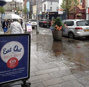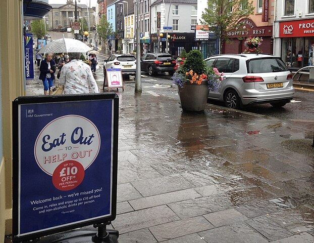 Eat Out to HELP OUT poster, Omagh by Kenneth Allen, CC BY-SA 2.0 <https://creativecommons.org/licenses/by-sa/2.0>, via Wikimedia Commons